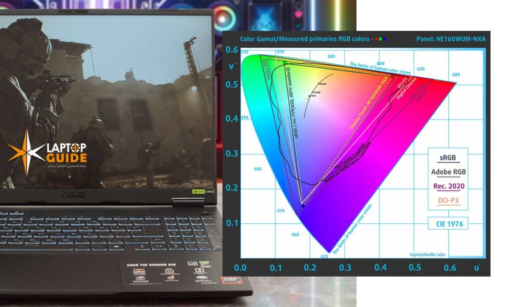 نمایشگر بدون شک یکی از مهم ترین بخش های هر لپ تاپ گیمینگی است، زیرا تجربه نهایی کاربر هنگام اجرای بازی ها، تماشای فیلم یا انجام کارهای گرافیکی به کیفیت تصویر بستگی دارد. ایسوس در مدل TUF Gaming A16 FA608 از یک پنل 16 اینچی نوع IPS با رزولوشن WQHD (2560×1600) استفاده کرده و نرخ نوسازی 165 هرتز را برای این نمایشگر در نظر گرفته است. نسبت تصویر 16:10 باعث می شود فضای کاری عمودی بیشتری برای گیمرها و طراحان فراهم شود، و تفاوت محسوسی در مقایسه با مدل های 16:9 سنتی دارد.