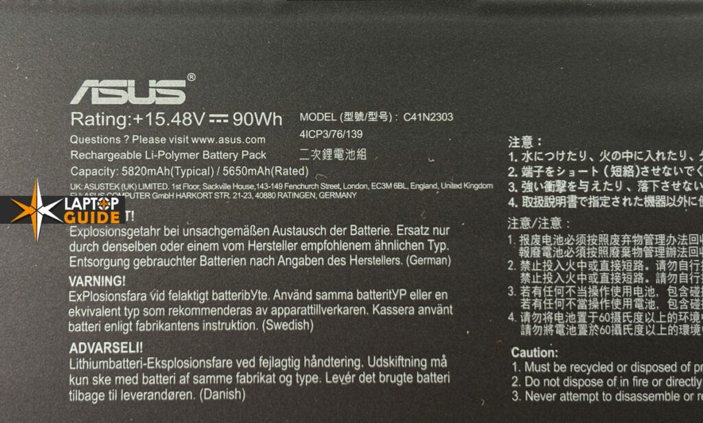 جدول مشخصات باتری ASUS TUF Gaming A16 2025